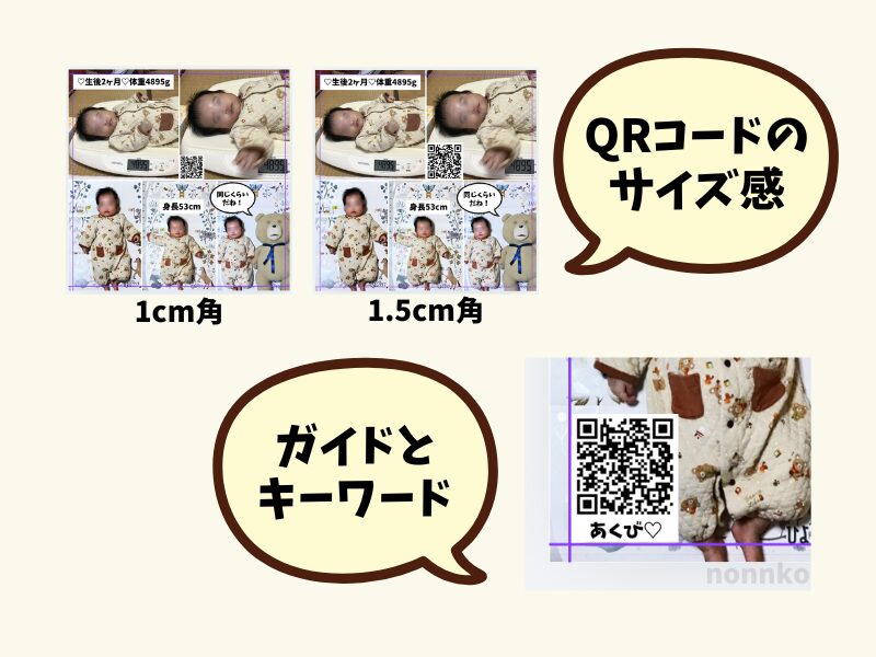 QRコードは写真の四隅(右下や左下など)に寄せると、メインの被写体を邪魔せずスッキリ収まります。