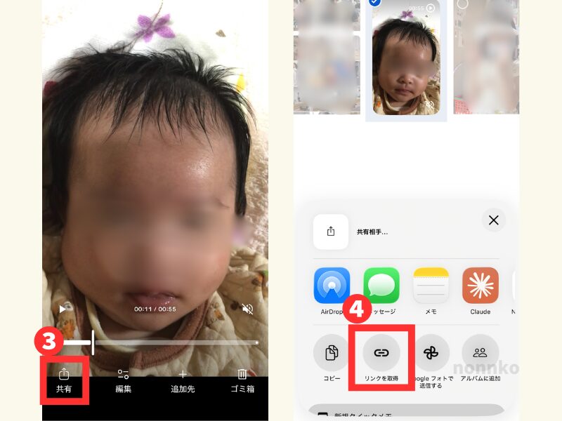 - Googleフォトで動画のリンクを取得する