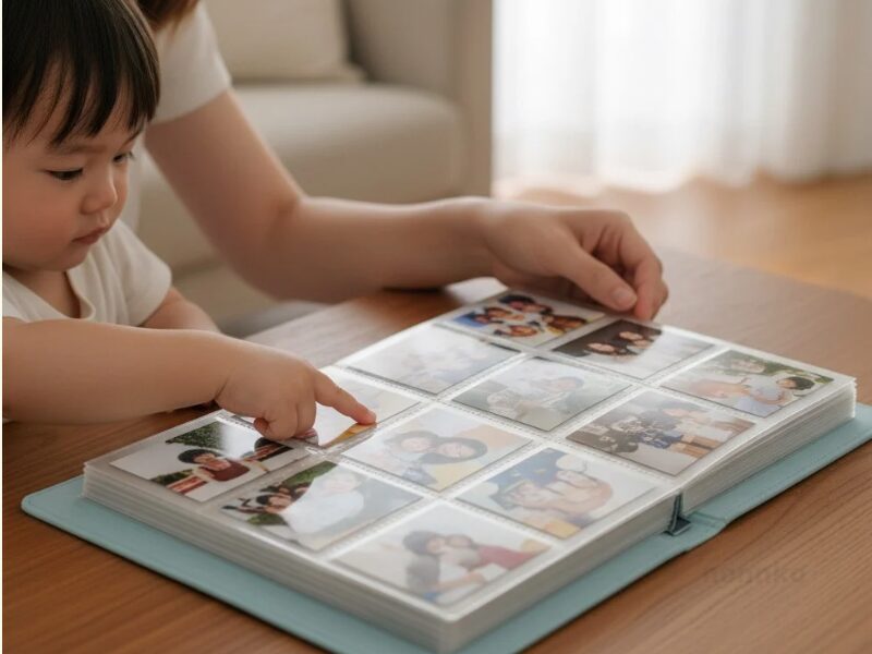 子どもがもう少し大きくなったら、一緒にシールを貼ったりコメントを書いてもらったりして“アルバム遊び”にしていくのもおすすめです。
