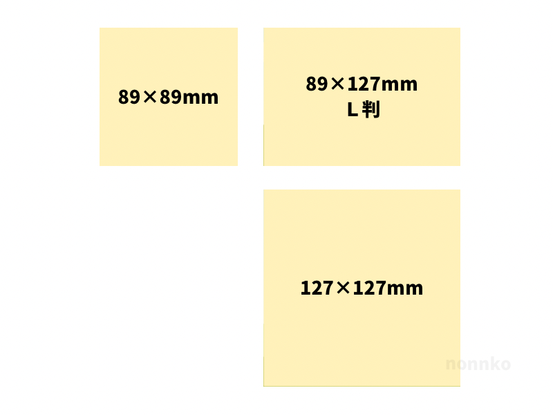 ※一部の通販サイトやプリントサービスでは、89mmや127mm以外の独自サイズが展開されている場合もありますが、一般的にはこの2サイズを覚えておけば安心です。