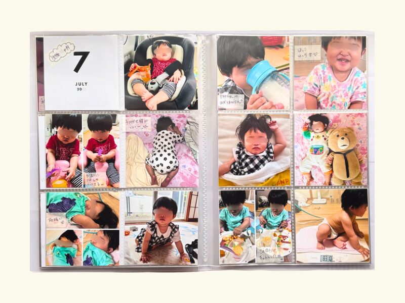 「初めて〇〇できたよー」「お気に入りのおもちゃ」など、小さなコメントがあると記憶が鮮やかによみがえります。