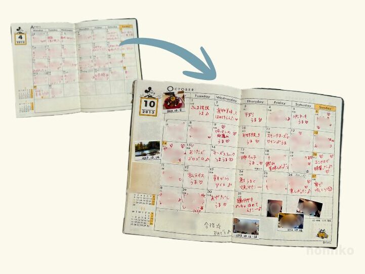 日記は文字だけのページから “思い出のページ” に変わっていきました。