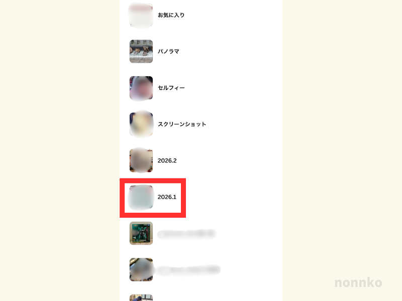 注文するとき、プリントしたい写真を写真アプリの「新規アルバム(例:2026.1)」にまとめて追加する。