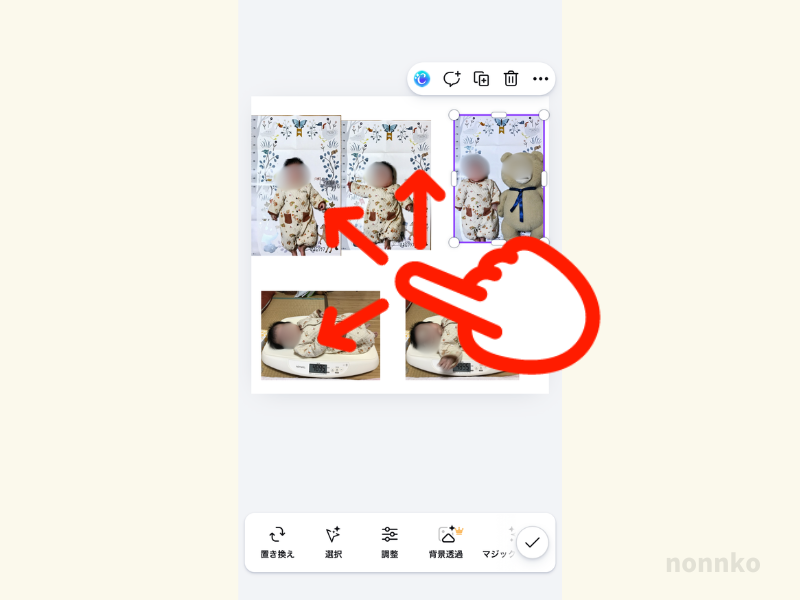 🔗 配置について詳しくはこちら:【Canva】スマホで簡単ましかくコラージュの作り方|STEP2